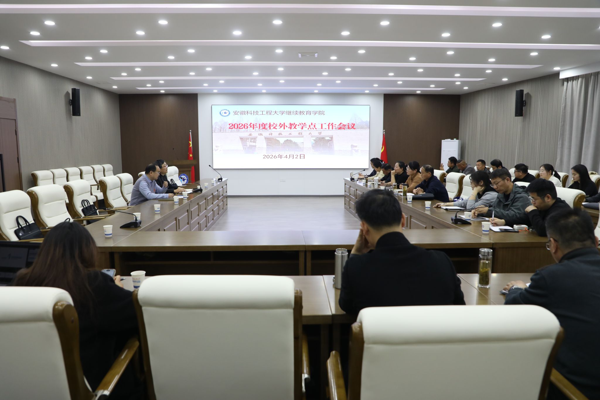 为深入贯彻新时代继续教育高质量发展要求,进一步加强校外教学点的管理,规范教学点办学行为,2026年4月2日下午,继续教育学院在凤阳校区老图书馆二楼多功能厅召开了2026年度校外教学点工作会议。继续教育学院院长张春雨、副院长张文国、相关管理人员、各校外教学点负责人及相关工作人员参加了会议。会议由张文国主持。