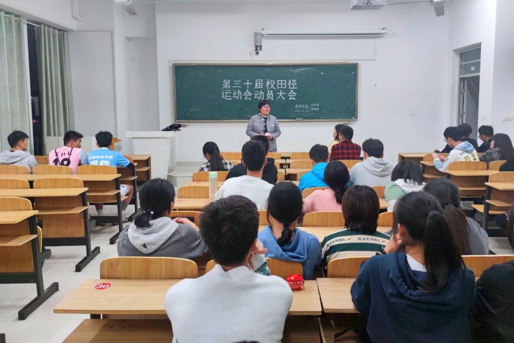 为激发同学们以积极良好的状态参加校第三十届田径运动会,增强参赛队员的安全意识和拼搏精神,10月28日下午,建筑学院在致知楼A309召开了校第30届田径运动会赛前动员大会,院党委副书记谢宜勤、专职辅导员阮怀思出席会议,学院学生会负责人和全体运动员参加。