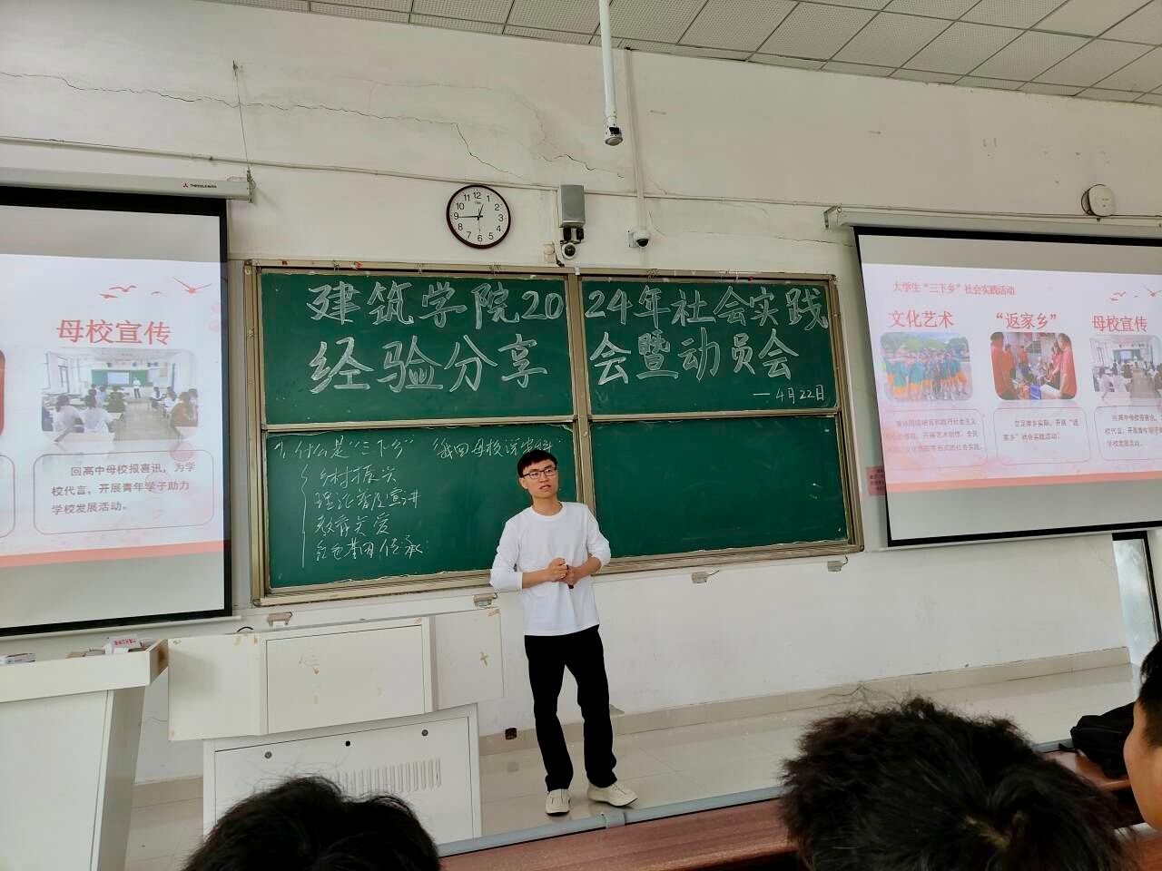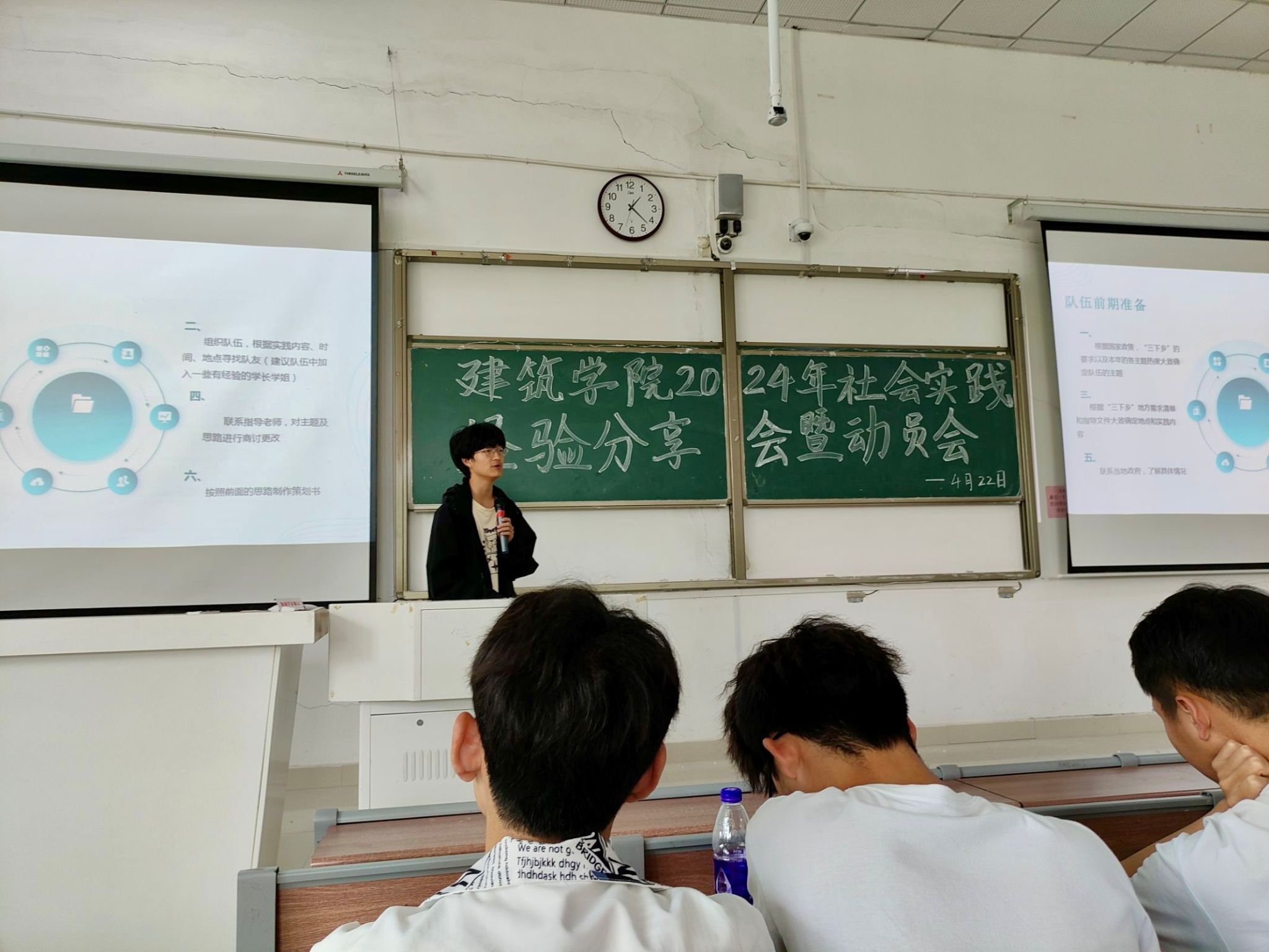 近日,建筑学院在致知楼C111召开社会实践经验分享暨2024年暑期社会实践动员会。学院团学干部,班级班长、团支部书记以及有意愿组队的队长参加了此次会议。会议由建筑学院团委书记沈德艳主持。