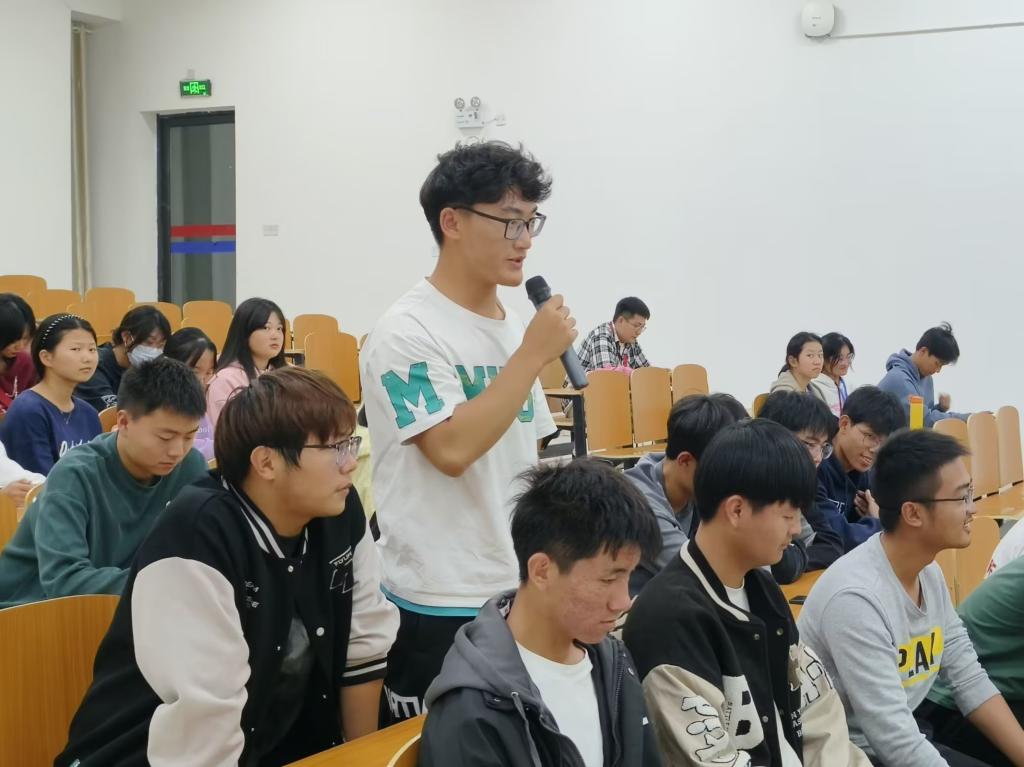 本次交流会以专业为单位举办四场,主要从大学角色转变、专业认知提高、新目标的确定、良好习惯养成等方面讲解。在交流会上,老生代表们以简洁诙谐的语言向新生分享了他们宝贵的学生生活经验。在学习方面,学长学姐们带来了许多“干货”,强调了大学学习的重要性,并结合专业特色,希望新生们积极参加学科类竞赛,加强理论与实习实践联系,要勤于练习,善于总结。在生活方面,他们讲述了自己的大学生活经历,鼓励学弟学妹们科学合理地利用和安排时间,积极参加体育、社团活动和社会实践,全面锻炼能力,提升综合素养。在交流提问环节中,新生们踊跃提问,学长学姐帮助答疑解惑,让新生对大学学习和生活规划更清晰。