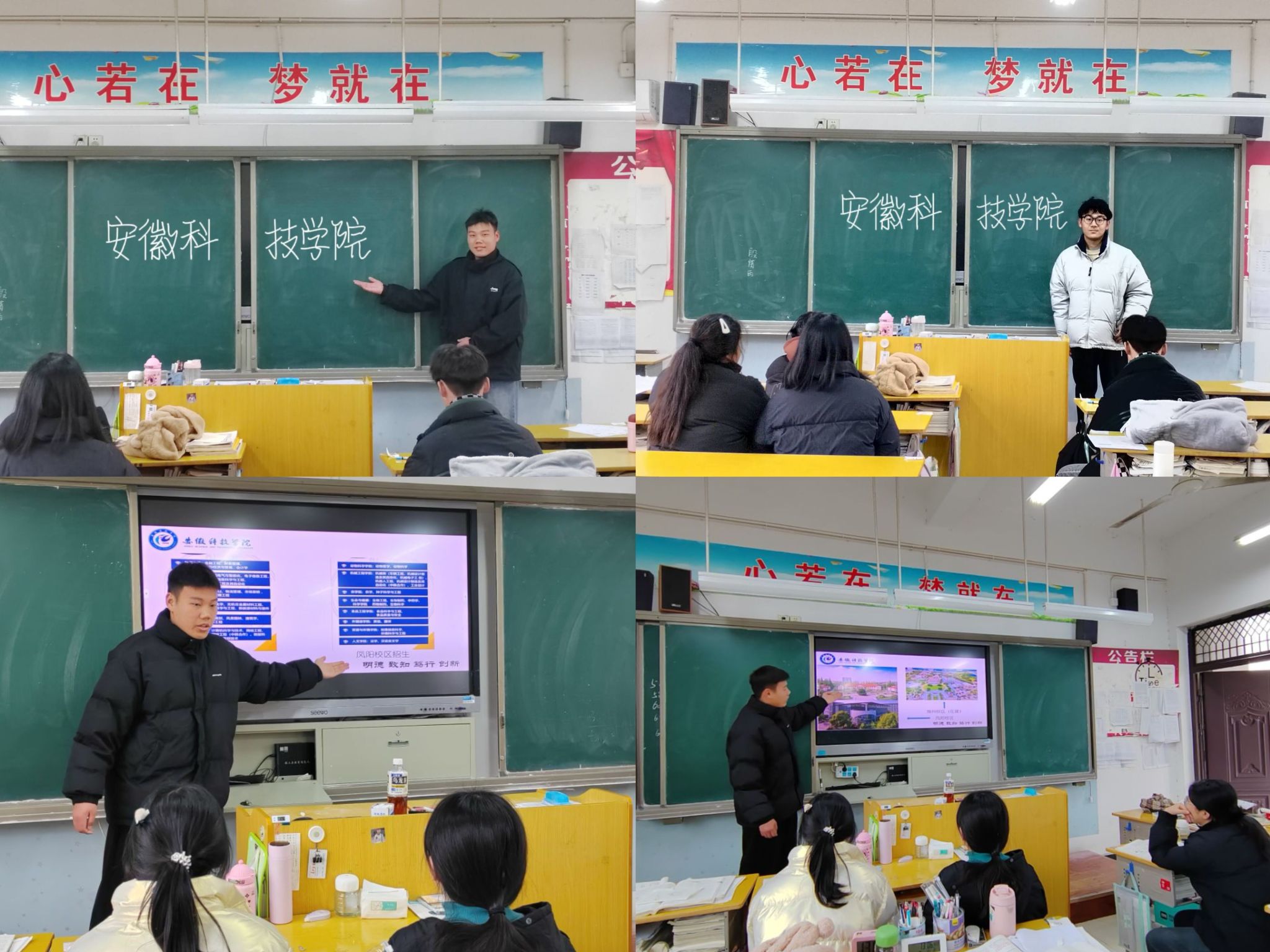宣讲会上,团队成员向一中学子介绍了安科的办学特色、学科优势、校园文化、本科专业、招生政策、奖助政策,分享了他们在大学的求学经历、职业规划,充分的展示了安科深厚的的文化底蕴,并鼓励学弟学妹们报考安徽科技学院。宣讲内容覆盖了学弟学妹们关注的每一处细节,为临近高考而感到报考迷茫的他们开辟了一条明亮的道路,让颍上一中学子们对安科充满了向往,对未来不再迷茫、对高考不再恐惧,对自己充满信心。