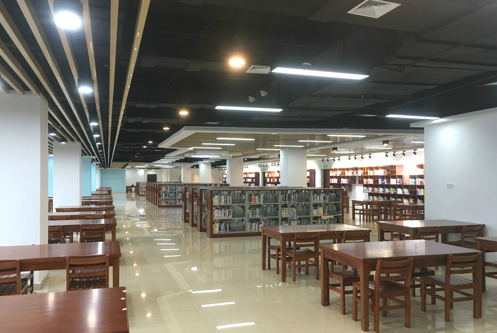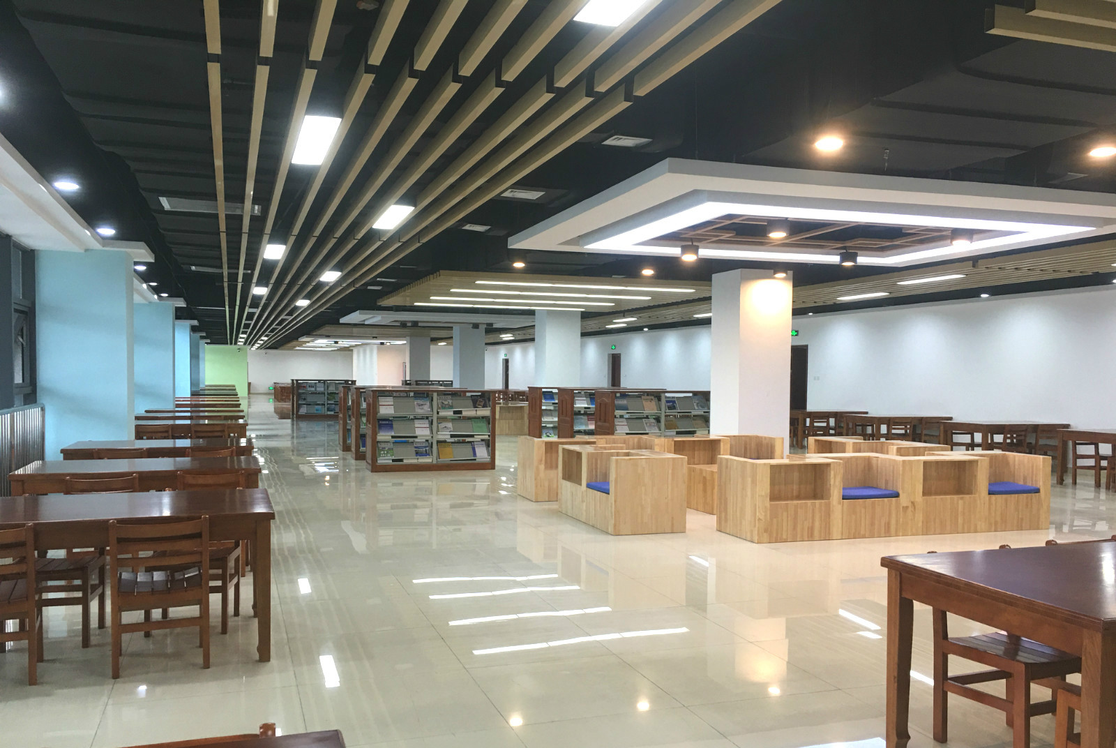 龙湖校区图书馆总面积2.8万平方米,设计藏书60万册,阅览座位3000多个,建有藏阅一体书库6个、新书库、期刊阅读室、电子阅览室、自修室、休闲阅读区、研讨区等,集信息资源中心、学习研究中心、学术交流中心于一体,是一个现代化、自助式、休闲化的多功能图书馆。
