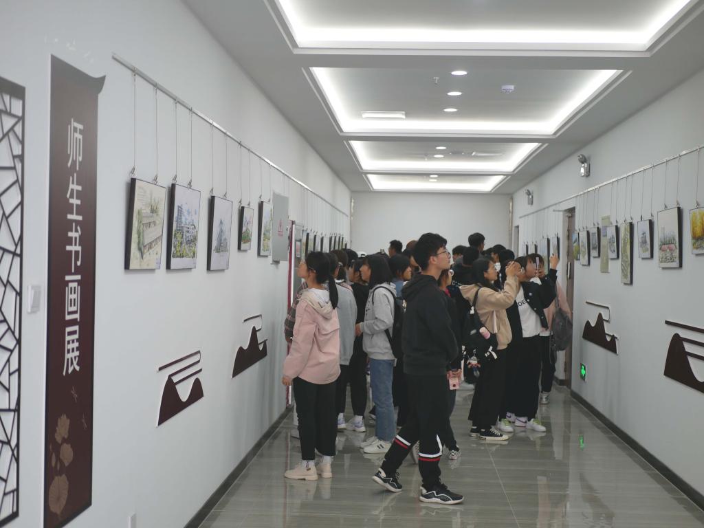 手绘校园一等奖获得者张玮豪在校史馆师生书画展区与作品合影时说道:“初来安科,我就是安科新校区第一批学生中的一员,历经四年时光,恰逢母校七十周年校庆,我感到无比幸运。大学生活成为我一生中抹不掉的青春记忆,感谢母校四年的栽培,也感谢母校能够给我这样一个机会,利用所学,将母校的风景定格在纸上,作为生日礼物赠给母校。无论多长时间过去,我都永远是安科人,我将用实际行动为母校赢得更多的光彩。”