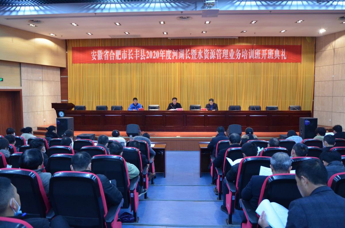 为深入学习贯彻落实习近平总书记视察安徽重要讲话精神,建设“河畅、水清、岸绿、景美、人和”的幸福河湖,受长丰县水务局委托,我校举办了长丰县河(湖)长暨水资源管理业务培训班,11月26日上午,在我校凤阳校区会议中心第二报告厅举行了该班的开班典礼。校党委委员、副校长黄友锐,继续教育学院院长杨维来,长丰县水务局副局长颜礼标及该班140名学员参加了典礼,典礼由杨维来主持。