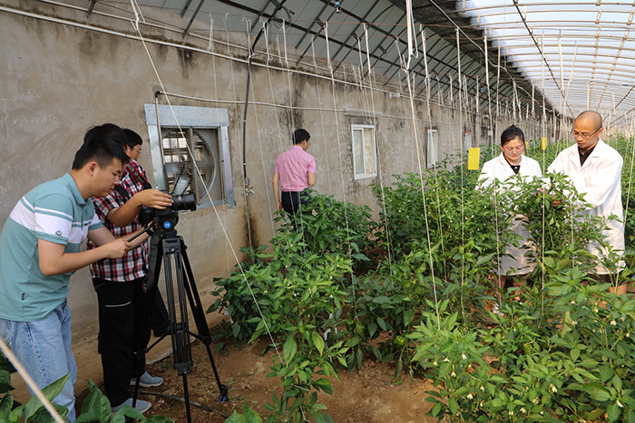 辣椒育种团队专家胡能兵副教授向记者介绍不同辣椒种质资源及选育的新品种