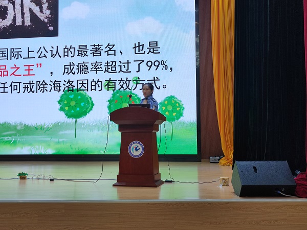 宣讲会上,蚌埠市戒毒所心理矫治中心主任刘莹以“珍爱生命,远离毒品”为题,阐释了毒品演变史、毒品种类、吸毒人员特征,利用吸毒、贩毒的典型案例与同学们进行互动,警示广大青年学生要远离毒品、珍爱生命。蚌埠市戒毒所教育科负责人朱正光以“识毒不试毒,健康不践康”为宣讲主题,结合自己工作经历,融入案例展示、情景再现,生动地讲述了青年学生如何提高识毒、防毒、拒毒、战毒的意识和能力,内容详实,事例生动,讲授深刻,并呼吁广大青年学生无论在大学校园还是今后人生的各个阶段,都要远离毒品。