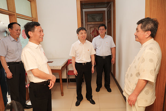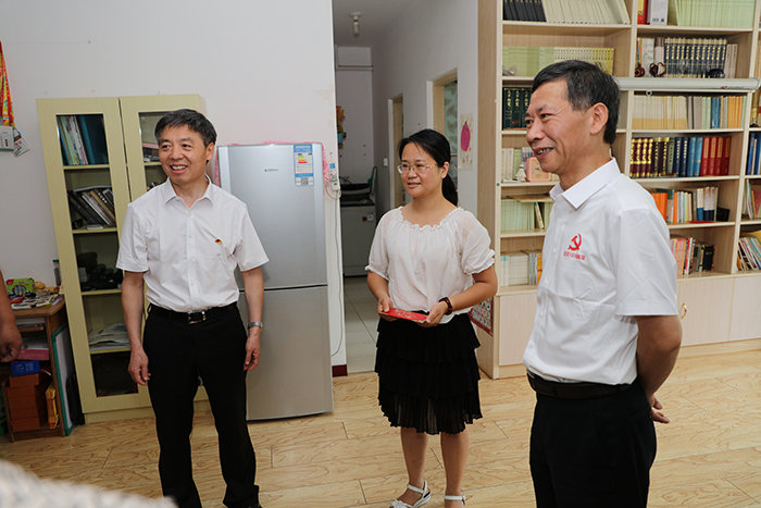 走访慰问中,蒋德勤一行与慰问对象亲切交谈,详细询问他们的工作、生活情况,并为行动不便的老同志颁发和佩戴“光荣在党50年”纪念章,感谢他们为学校事业发展作出的积极贡献,认真听取他们的意见建议和问题诉求。同时要求相关部门要结合党史学习教育“我为群众办实事”实践活动,积极关心关爱老党员、生活困难党员等,及时帮助解决实际困难,使基层党员师生充分感受到党的关心和温暖。