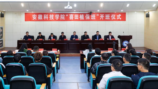 开班仪式上,农学院植物保护系主任毕亚玲解读了“喜田植保班”组建情况和校企合作协议,安徽喜田生物科技有限公司总经理郭晓刚和农学院党委书记何世潮共同为“喜田植保班”揭牌,农学院党委副书记张轶辉向“喜田植保班”校内辅导员李娜授旗。“喜田植保班”学生代表梁德玥作表态发言。(特约通讯员:李娜 审核:何世潮 姚文均 编辑:张威)