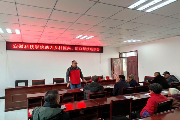 为做好我校乡村振兴定点帮扶工作,巩固拓展脱贫攻坚成果同乡村振兴有效衔接,充分发挥人才及科技优势,12月7日,由马克思主义学院院长张德化,生命与健康科学学院崔峰,农学院余海兵、隋益虎和吴孝国等五位教师组成的专家团赴凤阳县枣巷镇黄咀村、黄湾乡吴窑村开展“安徽科技学院助力乡村振兴 对口帮扶培训”活动。