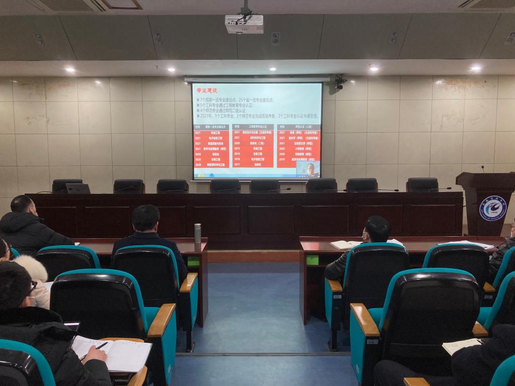 为做好新一轮审核评估迎评促建工作,2月18日上午,我校设视频分会场,组织参加麦可思主办的“常熟理工学院新一轮审核评估评建实践”专题讲座,讲座由常熟理工学院教学质量管理处处长黄文祥主讲。党委委员、副院长黄友锐,教务处处长赵伟峰,督导考核办公室主任程斌,各教学院(部)分管教学副院长、教学秘书,督导考核办公室及教务处相关人员参加了会议。