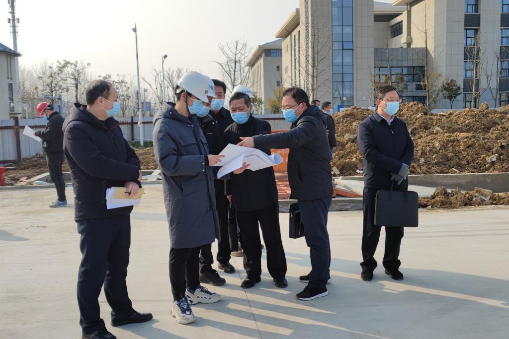 2月21日上午,党委副书记、院长李震,党委委员、副院长黄远友,党委委员、副院长黄友锐,在基建管理处、监理单位、施工单位等项目负责人及相关人员陪同下,来到龙湖校区实验实训综合楼A项目工地现场检查指导工作。
