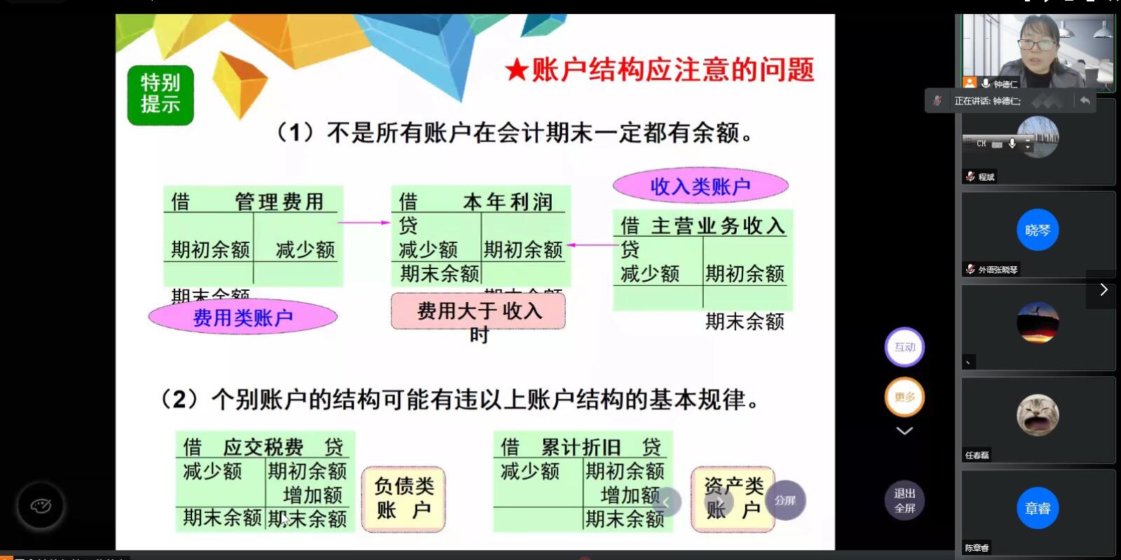 校教学督导员、财经学院副教授钟德仁利用腾讯会议+学习通平台,为青年教师做了一堂精彩的《会计学》线上教学示范观摩课。钟德仁老师线上教学设计合理,课堂节奏控制得当,课件PPT制作美观,现代教育技术“超星一屏三端”运用娴熟,思政元素自然融入,教学内容丰富,教学组织有序,课前课中课后教学安排合理,师生线上互动效果较好,受到与会师生的一致好评,线上教学目标达成取得预期效果。