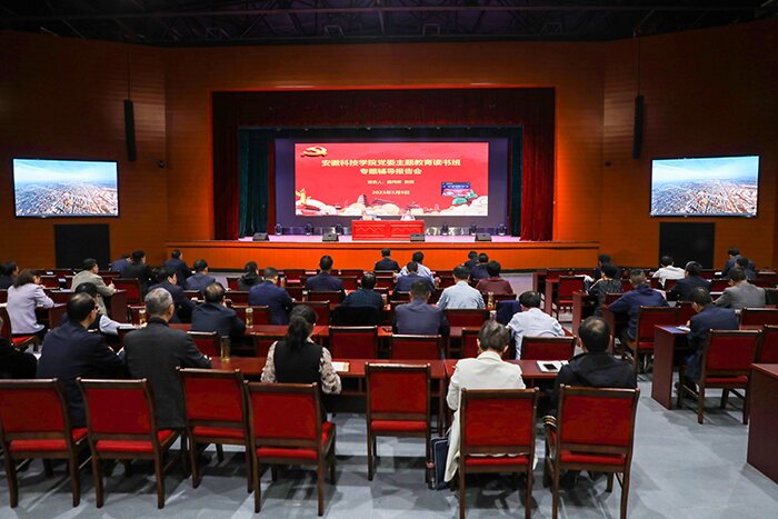 5月9日下午,学校党委举办主题教育读书班暨理论学习中心组(扩大)学习会。党的二十大代表、安徽师范大学马克思主义学院路丙辉教授应邀来校作专题辅导报告。校领导李震、黄远友出席会议。报告会由黄远友主持。