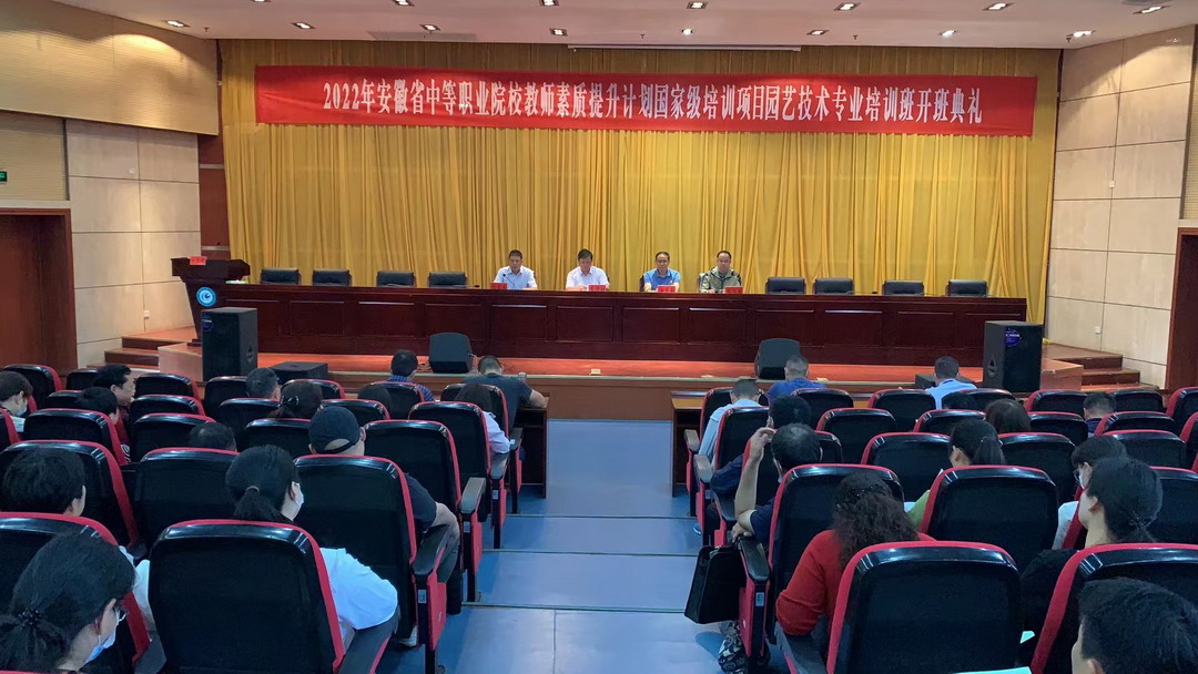 根据教育部和财政部《关于实施职业院校教师素质提高计划(2021—2025年)的通知》,5月23日上午,学校在凤阳校区会议中心二楼报告厅举办了2022年安徽省中等职业院校教师素质提升计划国家级培训项目园艺技术专业培训班开班典礼,全省各地市的中职骨干教师学员参加培训。安徽科技学院党委委员、副院长李升和教授,安徽工商职业学院汪贤武教授,继续教育学院副院长张文国以及相关工作人员出席开班仪式。典礼由继续教育学院党支部书记、院长杨维来主持。