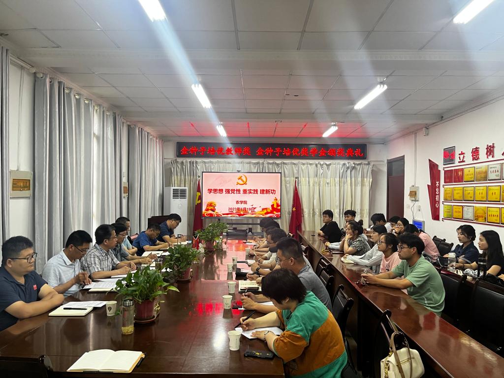 为深入开展学习贯彻习近平新时代中国特色社会主义思想主题教育,引导师生立足本职争先创优、再立新功,6月19日下午,2022年度“金种子培优教师奖、金种子培优奖学金”颁奖仪式在农学院会议室举行。仪式由农学院党委书记何世潮主持。