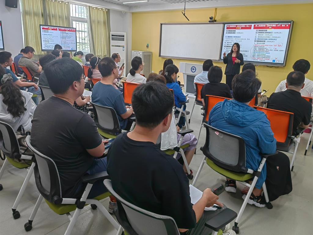 为积极推动我校国家级一流本科课程申报工作,6月27日下午,学校在凤阳校区智慧教室307召开一流本科课程建设与申报工作推进会。会上,邀请超星集团课程运行总监孔鑫凯作了“知识图谱赋能一流课程建设与申报”的报告。省校级课程负责人、新进教师代表等50多人参加报告会。会议由教务处副处长高青海主持。