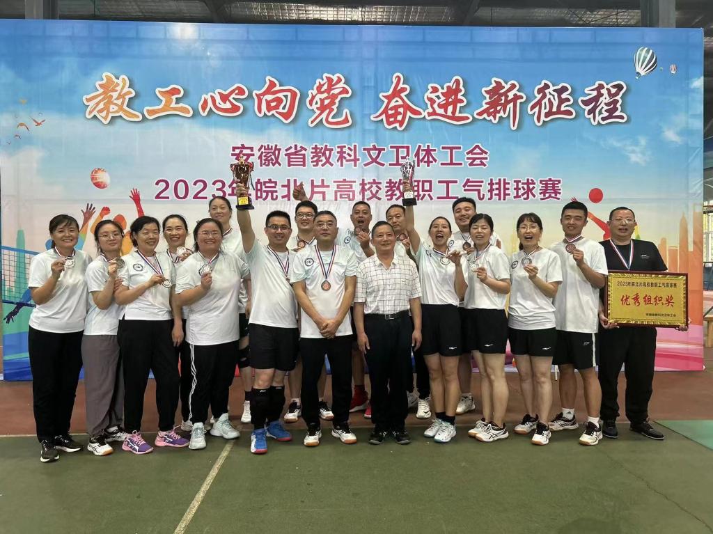 9月24日,由安徽省教科文卫体工会主办,淮南师范学院承办的2023年皖北片高校教职工气排球赛胜利闭幕。本次气排球赛分男子组和女子组,共有皖北片10所高校20支代表队参赛。经过两天的激烈角逐,我校教职工女子代表队斩获亚军、男子代表队荣获季军。学校是唯一女子和男子代表均获奖的参赛高校。