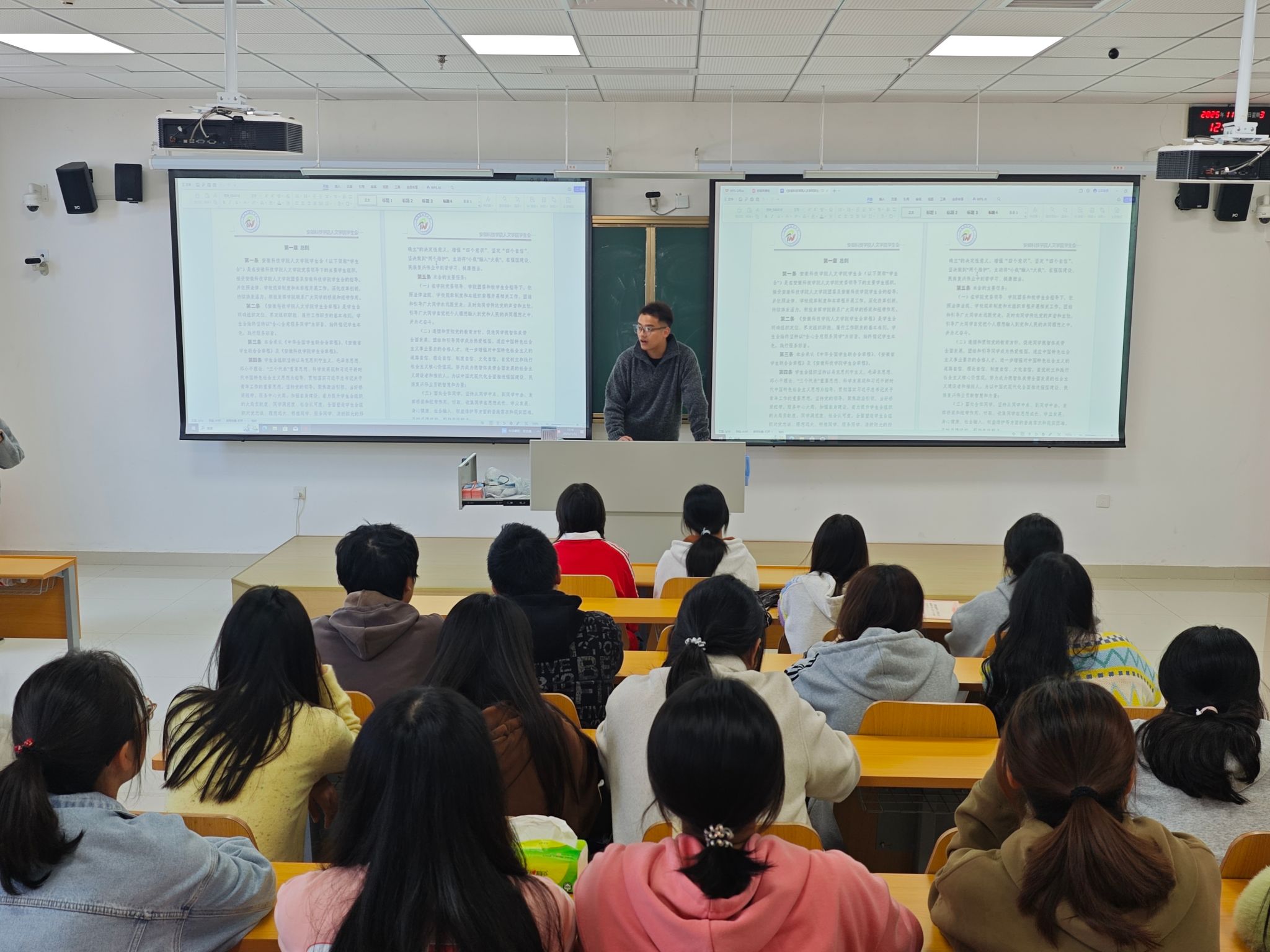 会议对修订后的《人文学院学生会章程》及团支部工作条例进行了宣讲与解读,并就学生会部门职能划分、成员留任等相关事宜作了详细说明。会议强调,学生会是服务广大同学的重要组织,希望全体成员锤炼务实作风,主动倾听同学诉求,不断提升综合能力,努力成长为善沟通、能奉献、有担当的新时代学生骨干,切实发挥学生组织的桥梁纽带作用。
