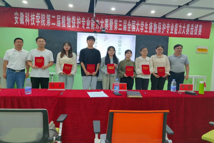 9月13日下午,学校于求知楼B307成功举办“安徽科技学院第二届植物保护专业能力大赛暨第三届全国大学生植物保护专业能力大赛选拔赛”。舒英杰、张轶辉、许峰、张雪平、张秦莹等五位老师应邀担任大赛评委。