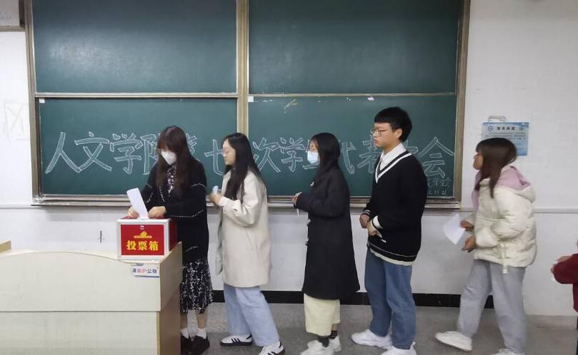 随后,杜秦阳说明了安徽科技学院第十四次学代会代表、人文学院第十一届学生会主席团、人文学院第七届学生委员会委员候选人选举的评选标准,并就候选人的经历向在座同学做了详细介绍。接着由所有参会人员投票选举产生了最终人选。