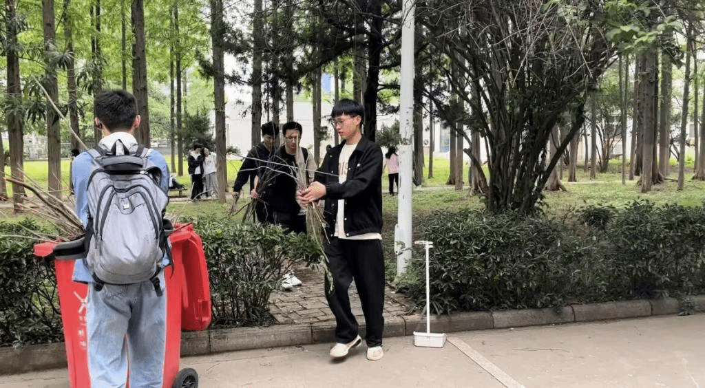 在青年林维护打扫活动中,法学221班与汉语言文学223班的同学们分工合作,高质量完成两处青年林的捡垃圾和打扫枯枝落叶任务维护了了校园一角的整洁和生机盎然。