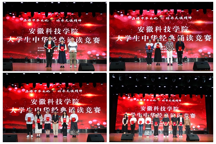 为贯彻《教育部等九部门关于开展第26届全国推广普通话宣传周活动的通知》的文件精神,助力推广普通话,发挥语言文字的浸润、助力作用,激发青年大学生奋斗精神与爱国情怀,9月25日下午,由教务处主办、人文学院承办的安徽科技学院大学生中华经典诵读竞赛决赛在大学生活动中心成功举行。蚌埠市广播电视台主持人吕彪,凤阳县融媒体中心新闻部编辑记者胡松、马克思主义学院教授王凤杰、学生处康佳蓉、人文学院专业课教师曹宋艳担任此次比赛评委。