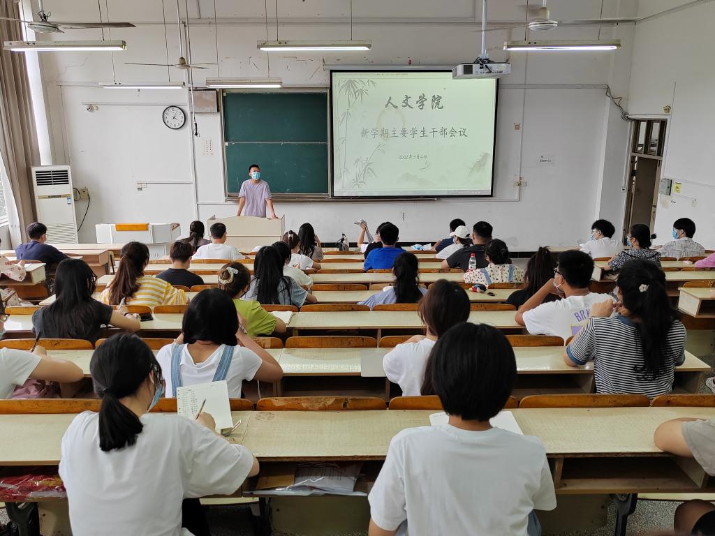 9月4日,人文学院于求A203召开新学期主要学生干部会议。学院党委副书记李沙娜、全体辅导员及班级主要班委参加。本次会议由辅导员焦雪松主持。