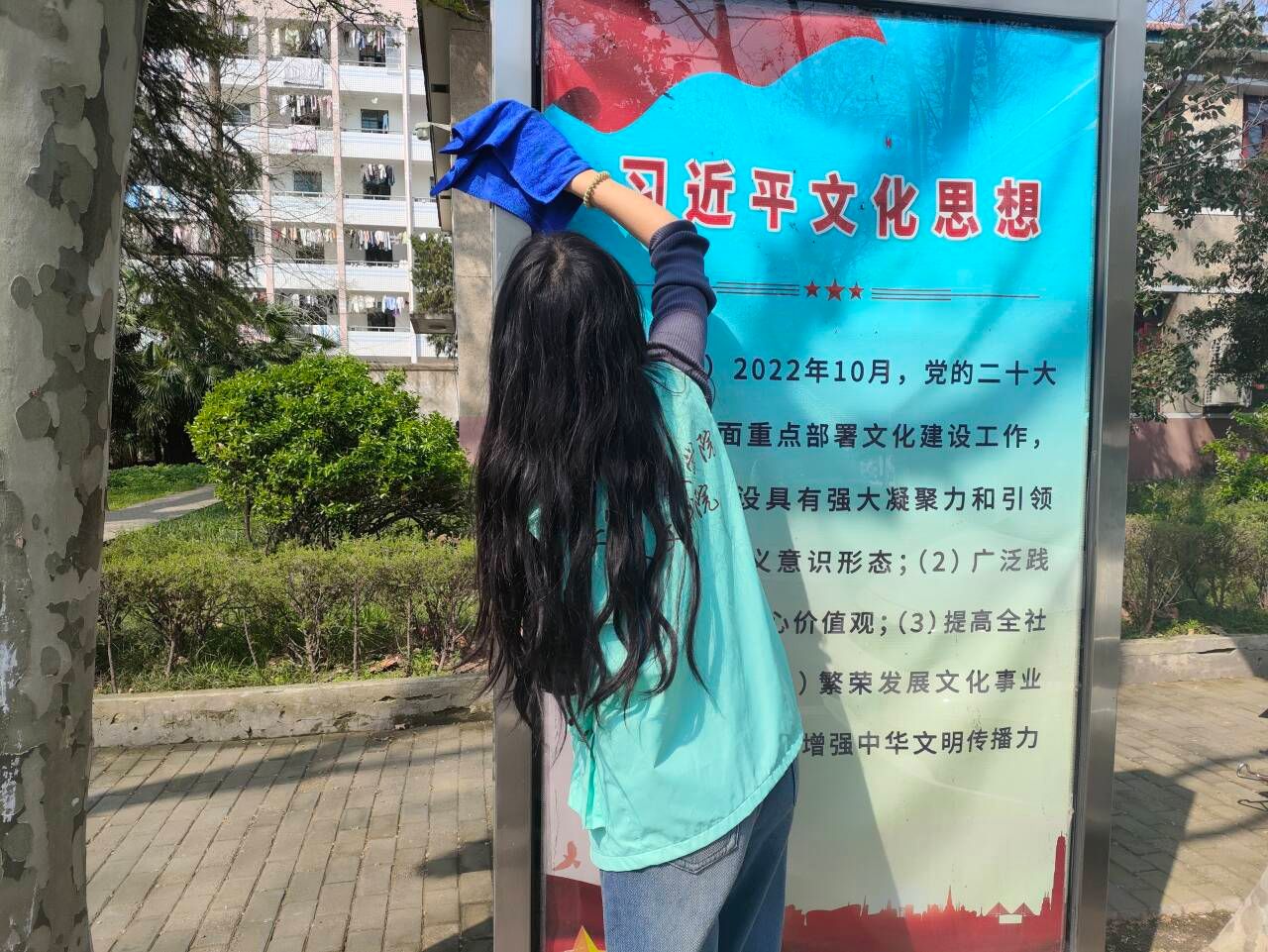春风拂大地,万物萌生机。为共同打造美丽校园,提高校园环境美观程度,增强同学们对校园环境的关注度和保护意识,人文学院学生会于3月31日至4月1日在安徽科技学院东区学知楼、求知楼和南门主干道开展宣传栏清洁校园志愿服务活动,众多同学积极参与。