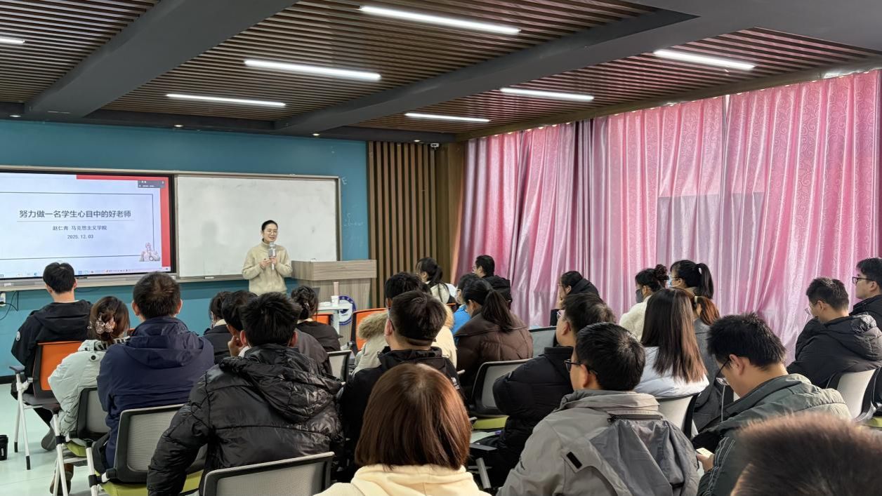 赵仁青教授紧扣“四有好老师”主题,结合生动案例与自身从教经历,深入阐述了教师践行高尚师德对落实立德树人根本任务的重要意义。她指出,教师应以理想信念为核心,做坚定信仰传播者;以道德情操为纲领,做人格魅力感染者;以扎实学识为根基,做传道授业解惑者;以仁爱之心为灵魂,做心灵之花浇灌者。整场报告如春风化雨般浸润人心,既展现了理论的高度,又蕴含着实践的智慧,为我校新进教师的专业成长与教师队伍的持续优化提供了重要的思想启发与清晰的实践路径。