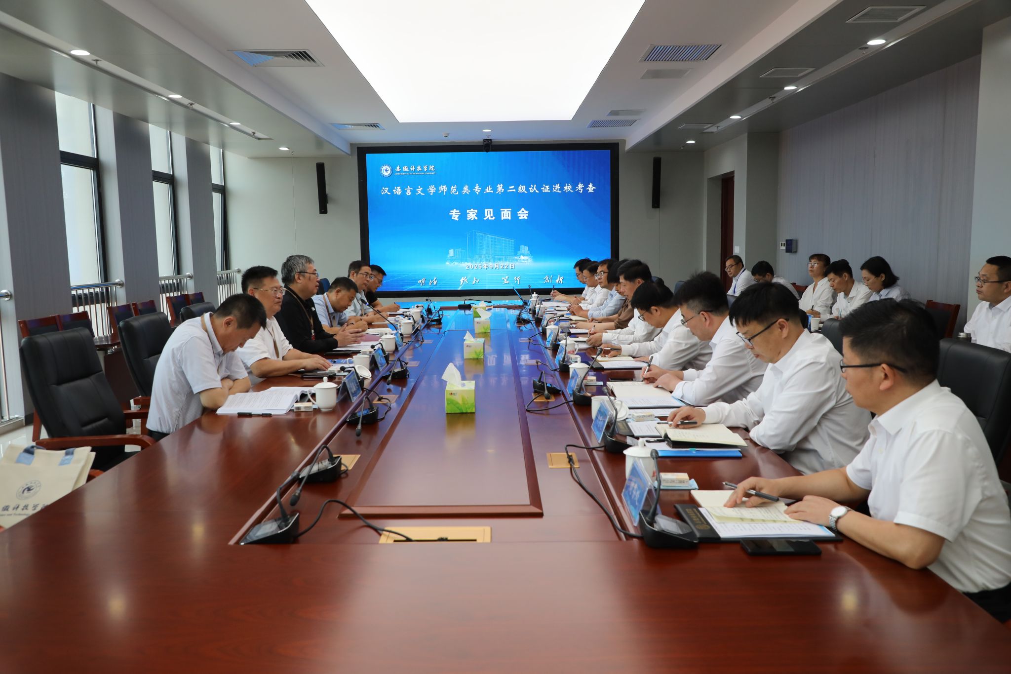 22日上午,专家组见面会在明德楼718会议室举行。专家组全体成员,安徽省教育评估中心负责人,学校党委书记时伟、院长李升和、副院长赵伟峰,教务处等相关职能部门主要负责人,人文学院党政负责人、汉语言文学专业负责人参加会议。会议分别由赵伟峰和钱进主持。