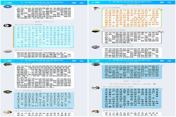 党支部通过QQ群组织学习了5月3日《习近平:向全国各族青年致以节日的祝贺和诚挚的问候》和学习强国文章《总书记眼中“好样的”青年是啥样?》内容,分享了习近平青年成长故事。党员纷纷谈了感悟和认识。
