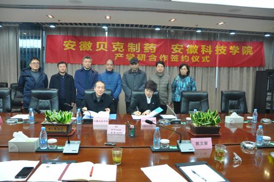会议结束前夕,双方代表签署了安徽贝克制药-安徽科技学院产学研合作协议。