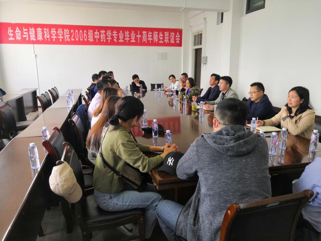 5月2日,2010届中药学专业校友相约凤阳,齐聚母校,汇报十年创业路,携手恩师话未来。下午3点,2010届中药学专业校友毕业十周年师生联谊会在学知楼生命与健康科学学院会议室举行。教务处处长、创新创业学院院长俞浩,生命与健康科学学院党委书记詹学文,信息与网络工程学院正处级组织员周向群(2010届中药学原班主任),生命与健康科学学院党委副书记彭丽萍,生命与健康科学学院副院长陈浩(2010届中药学专业毕业生),中药学专业教师代表时维静、刘汉珍、周国梁参加联谊会。