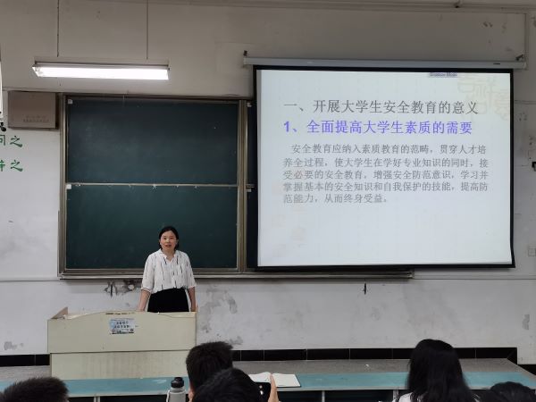 6月16日下午,生命与健康科学学院于求知楼A101教室开展以“安全警钟长鸣,平安幸福一生”为主题的安全教育专题讲座。学院党委副书记彭丽萍担任主讲,18、19、20级各班班长、团支部书记、学习委员聆听了讲座。