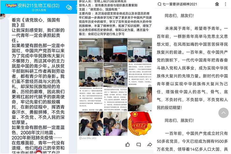 为使青年学子能够认真学习贯彻习近平总书记“七一”重要讲话精神,进一步坚定青年学子的理想信念,九月下旬,生命与健康科学学院各团支部开展了“强国有我 请党放心”主题团日活动。