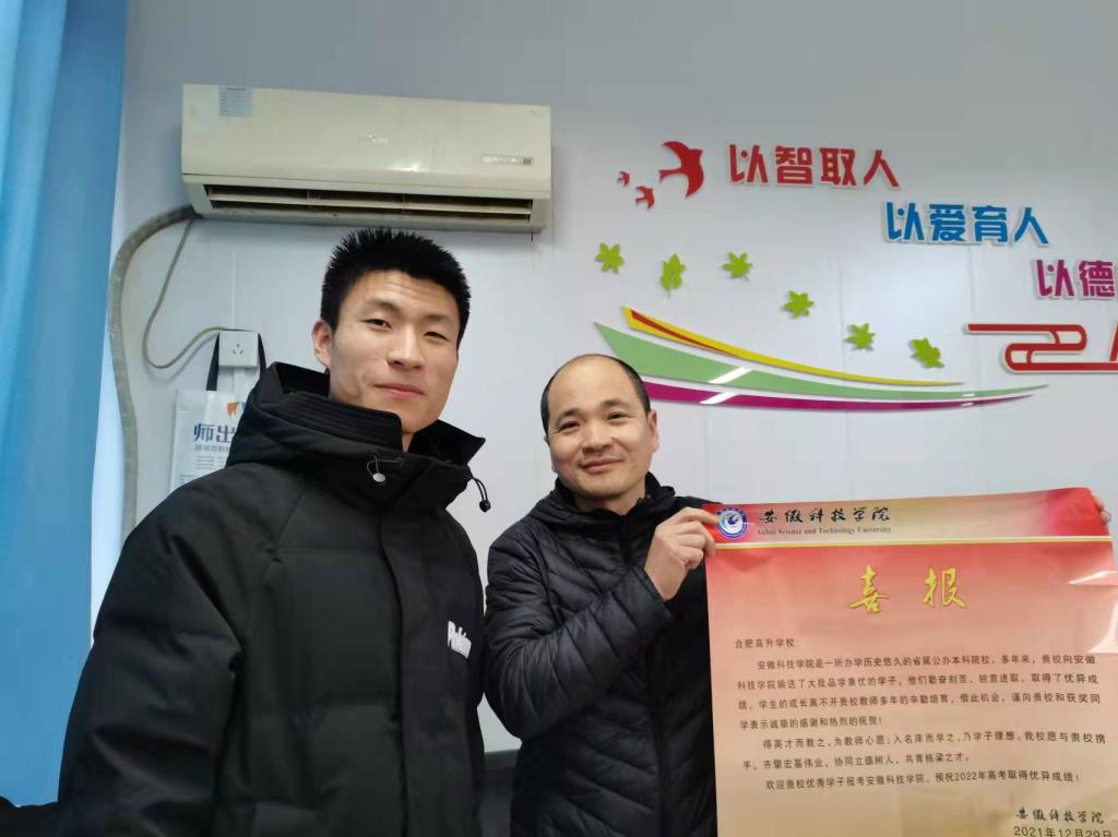随后,实践团成员跟随老师到部分班级开展学校宣传介绍、发放宣传册,通过“我与安科的故事”向同学们介绍了安徽科技学院的学习氛围、学校条件、历史渊源、校园风景、师资队伍、考研录取率等相关情况。随后与老师们一同张贴喜报,向母校报喜。