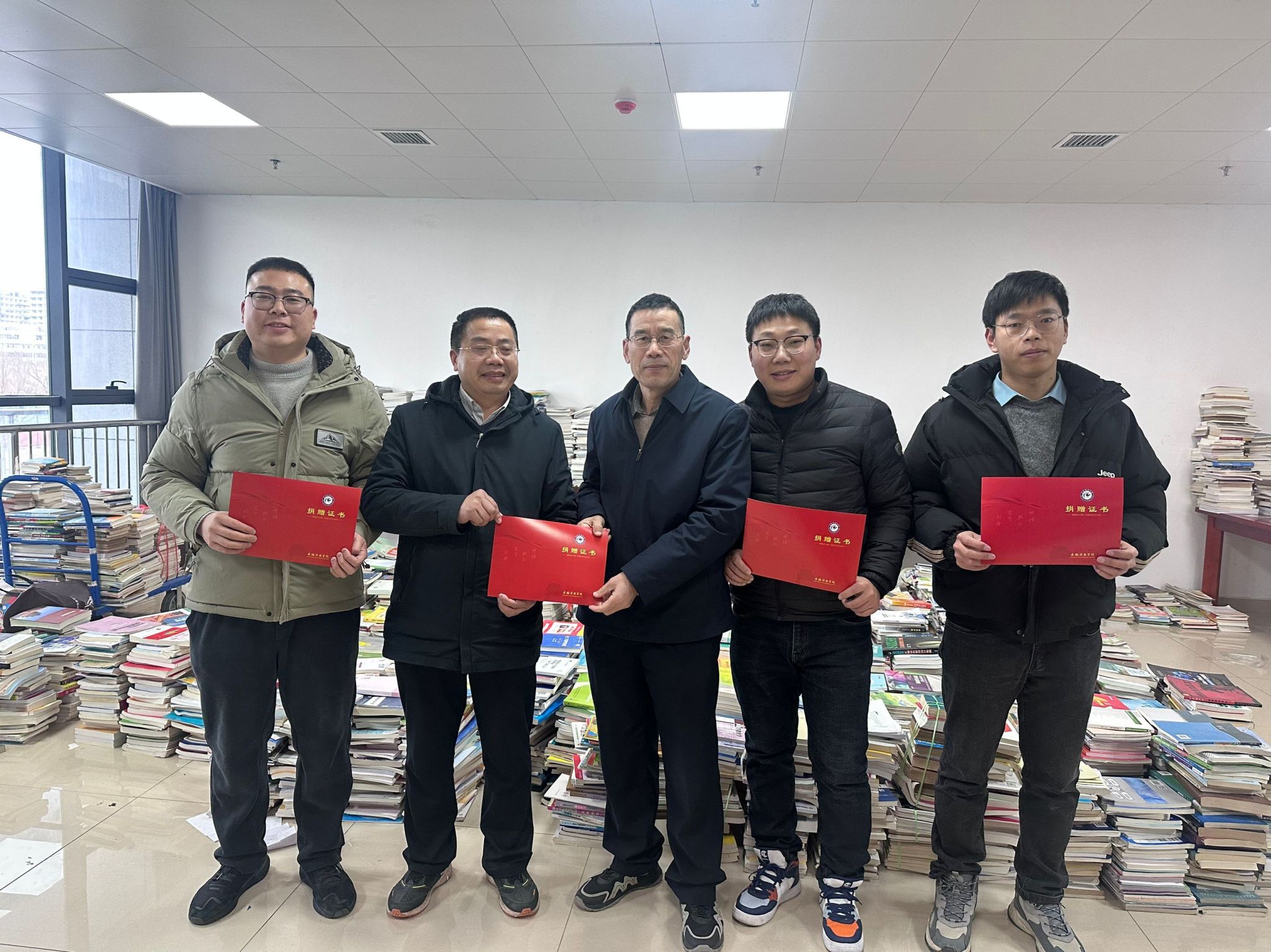 为响应学校“爱心传递,知识共享,书源循环,共建节约型校园”的捐书倡议,丰富我校图书馆馆藏资源,电气与电子工程积极响应学校号召,深入开展宣传动员工作,全院教职工积极踊跃捐赠图书,共捐赠图书6414册。图书馆馆长汪徐春向学院代表张深、洪乃羽、王乐颁发了捐赠证书,并对电气与电子工程教职工为学校图书馆建设与发展所做的大量工作表示诚挚感谢。