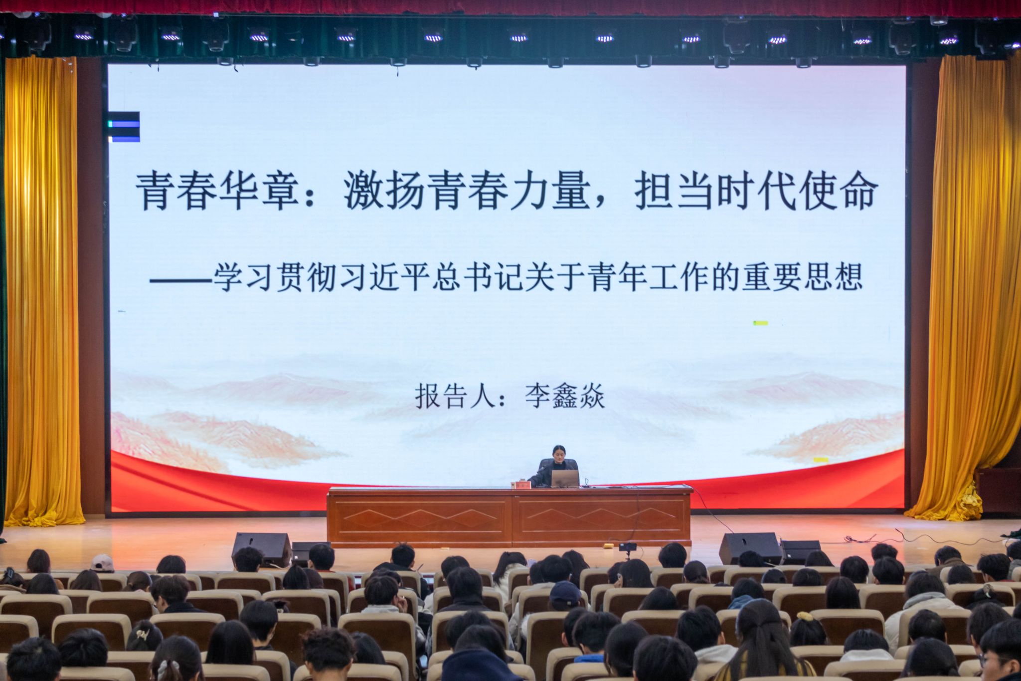为深入学习贯彻习近平总书记关于青年工作的重要思想,引导广大青年在全面建设社会主义现代化国家的实践中展现青春作为,11月26日下午,我校“青年马克思主义者培养工程”大学生骨干培训班第四讲在龙湖校区报告厅行。凤阳校区、滁州校区通过视频直播同步参与。蚌埠市“青年讲师团”成员李鑫焱应邀作题为“青春华章:激扬青春力量,担当时代使命——学习贯彻习近平总书记关于青年工作的重要思想”的专题讲座。
