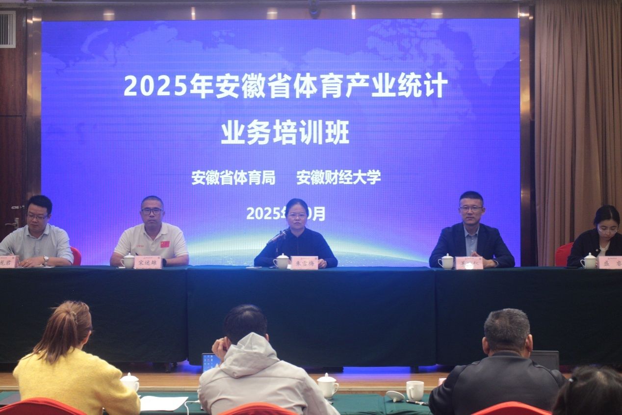 2025年10月16日至17日,由安徽省体育局组织的“2025年安徽省体育产业统计业务培训班”在蚌埠建工新时代大酒店顺利举办。安徽省体育局相关领导、来自全省16个地市的体育产业统计骨干,以及省体育产业重点研究基地的研究团队成员参加了本次培训。我校体育大数据研究中心主任宋述雄老师应邀出席并担任培训主讲。