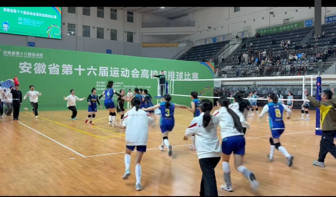 3月27日至4月3日,由安徽省人民政府主办,安徽省教育厅、安徽省体育局、宿州市人民政府承办的安徽省第十六届运动会高校部排球比赛在宿州市萧县举行。来自全省38所高校的734名运动员参加了该项赛事。我校女队表现优异,一路过关斩将,最终以全胜战绩夺得冠军,取得历史性突破。