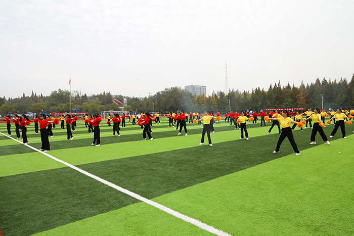随后的文体表演为在场师生带来了一场别开生面的视觉盛宴,将开幕式推向高潮。手捧花球的啦啦操队员们,以其特有的活力与魅力展示了安科儿女的朝气蓬勃;校健美操队员们带来伞操表演,将身体的柔韧性、协调性和力量完美结合,展现学生积极向上的精神风貌;集体齐舞和爵士齐舞更是以其独特的动感和节奏引得现场观众连连称赞,掌声不绝于耳,展现了我校学子的青春朝气和活力;彩带龙队员们活力满满,舞蹈动作刚劲有力,给观众带来强烈的视觉冲击,赢得阵阵掌声。