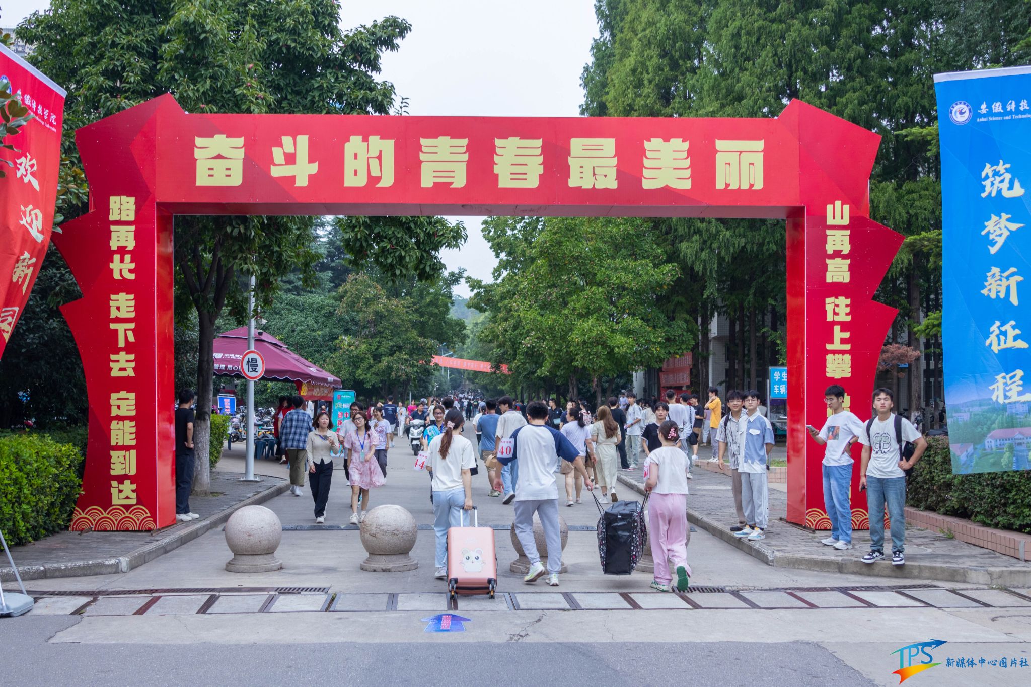 踏入美丽的校园,迎新标语如歌,欢迎横幅似画,各学院心意满满,迎新的教师和学长学姐已早早在报到点做好准备,面带笑容欢迎各位“萌新”的加入。