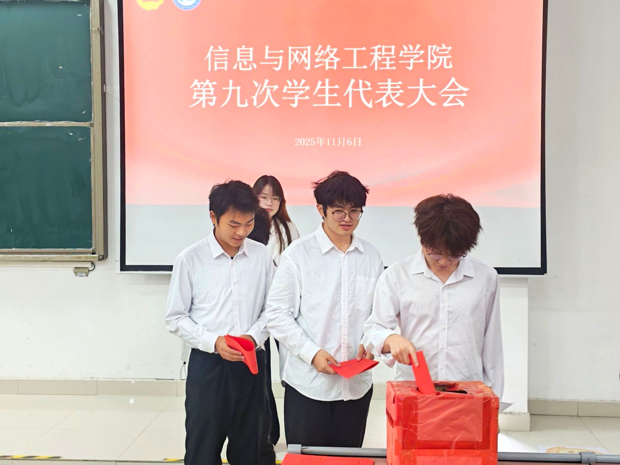 大会听取并审议通过了学生会工作报告,表决通过了《选举办法》及监票人、计票人名单,审议并通过了学生会章程修正案,宣读了校团委校学生会的文件批复,介绍了候选人基本情况,经投票选举,产生了35名新一届学生会委员会委员和2名第九届学生会主席团成员。