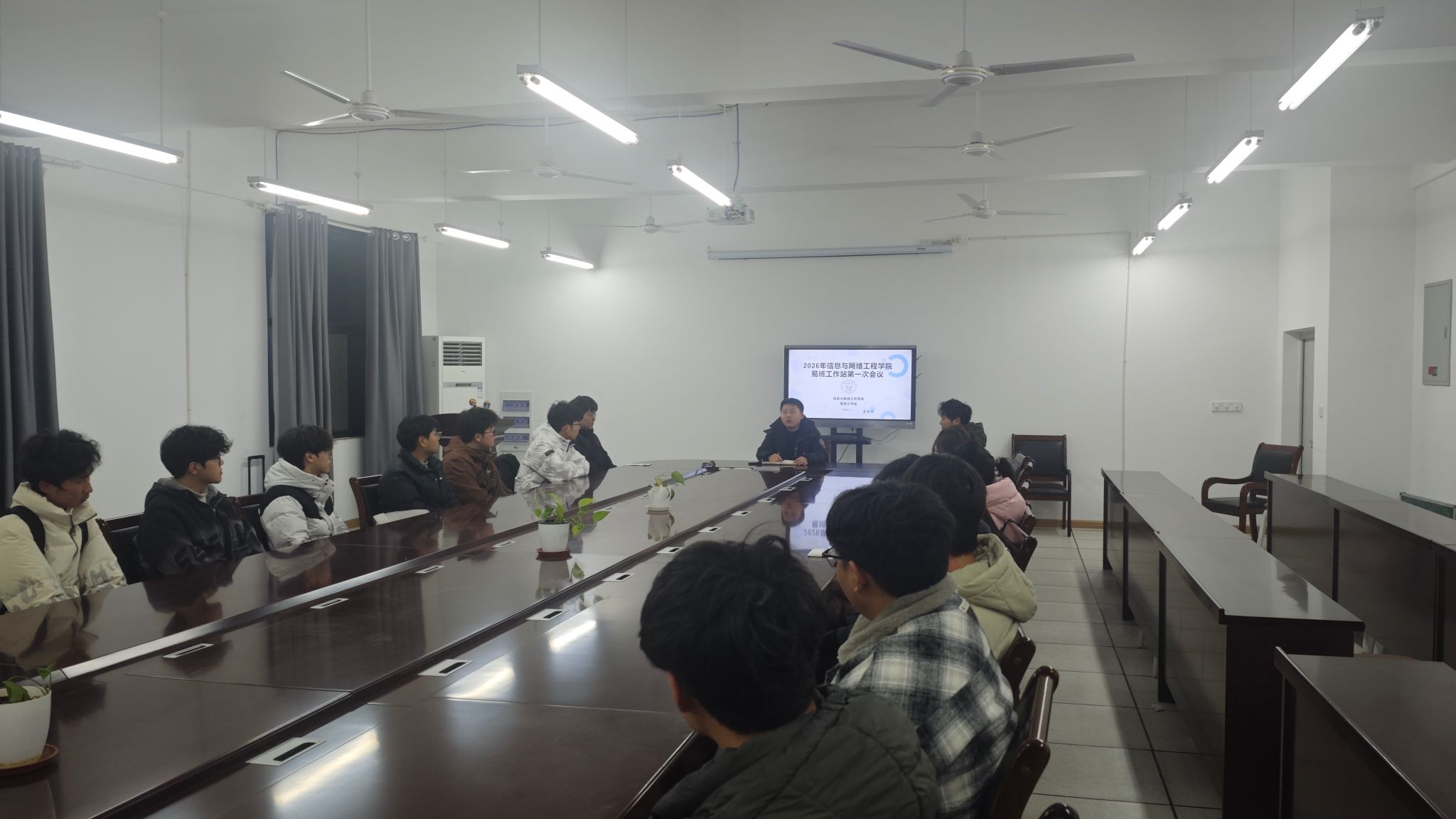 为明确新学期工作方向,加强学生干部队伍建设,3月4日晚,信息与网络工程学院易班工作站在尚行楼B418会议室召开新学期工作会议。会议由易班工作站指导老师徐琦琦主持,易班工作站全体成员参加会议。