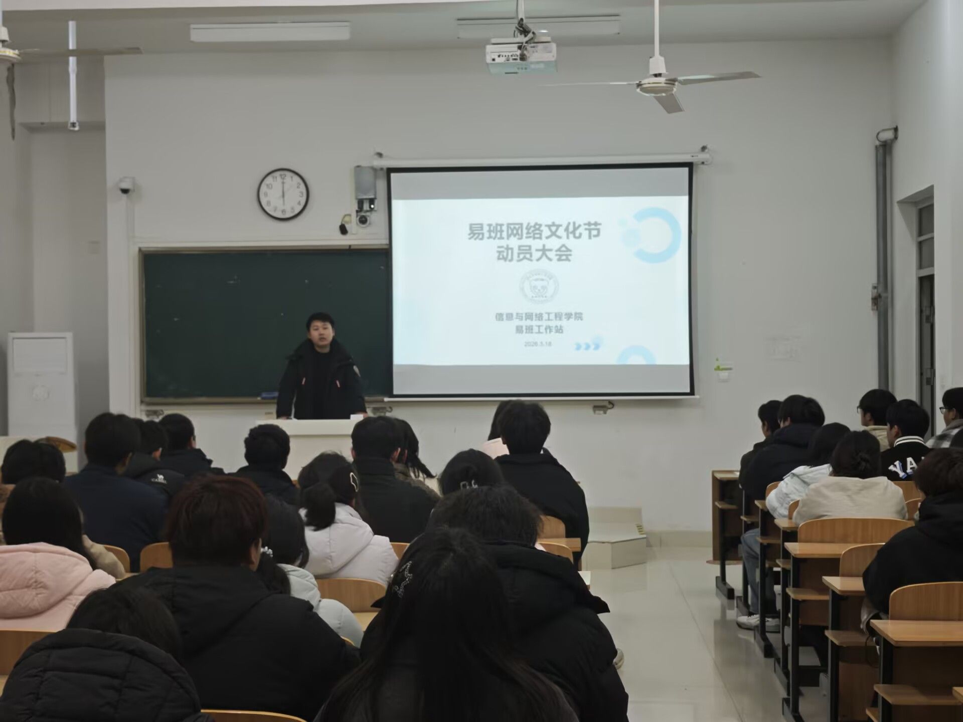 为引导同学们积极参与网络文化建设、争做校园好网民、共筑教育强国梦,3月18日晚,信息与网络工程学院易班工作站在致知楼C109召开关于举办第八届易班网络文化节动员会。会议由易班工作站指导老师徐琦琦主持,易班工作站全体成员以及学院各班级易班班长参加会议。