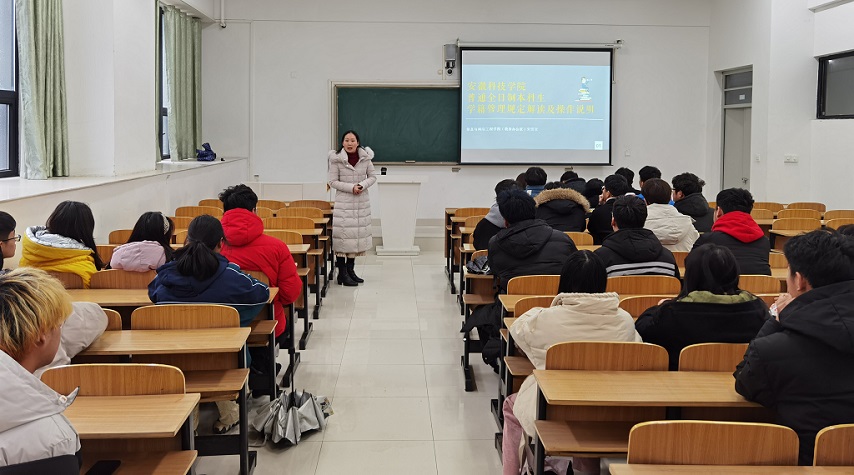 会上,宋雪亚结合《安徽科技学院普通本科生学籍管理实施细则》、《安徽科技学院全日制本科学生学士学位证书授予方法》,以入学注册与管理、学业过程管理、学生学士学位授予方法、GPA(平均学分绩点)主要概念解析、国家教育考试违规处理方法、学籍管理系统及查询平台的功能介绍为切入点,详细解读了学生学籍管理制度及相关操作说明。宋雪亚强调,作为学生,应当努力学习,尽量不补考、不重修,要积极使用学籍管理系统及查询平台,并且告诫在学业考试中要严格遵守考风考纪。最后她希望同学们能够仔细研读《学生手册》中学籍管理相关细则,并能够将会议内容和精神传达给身边同学。