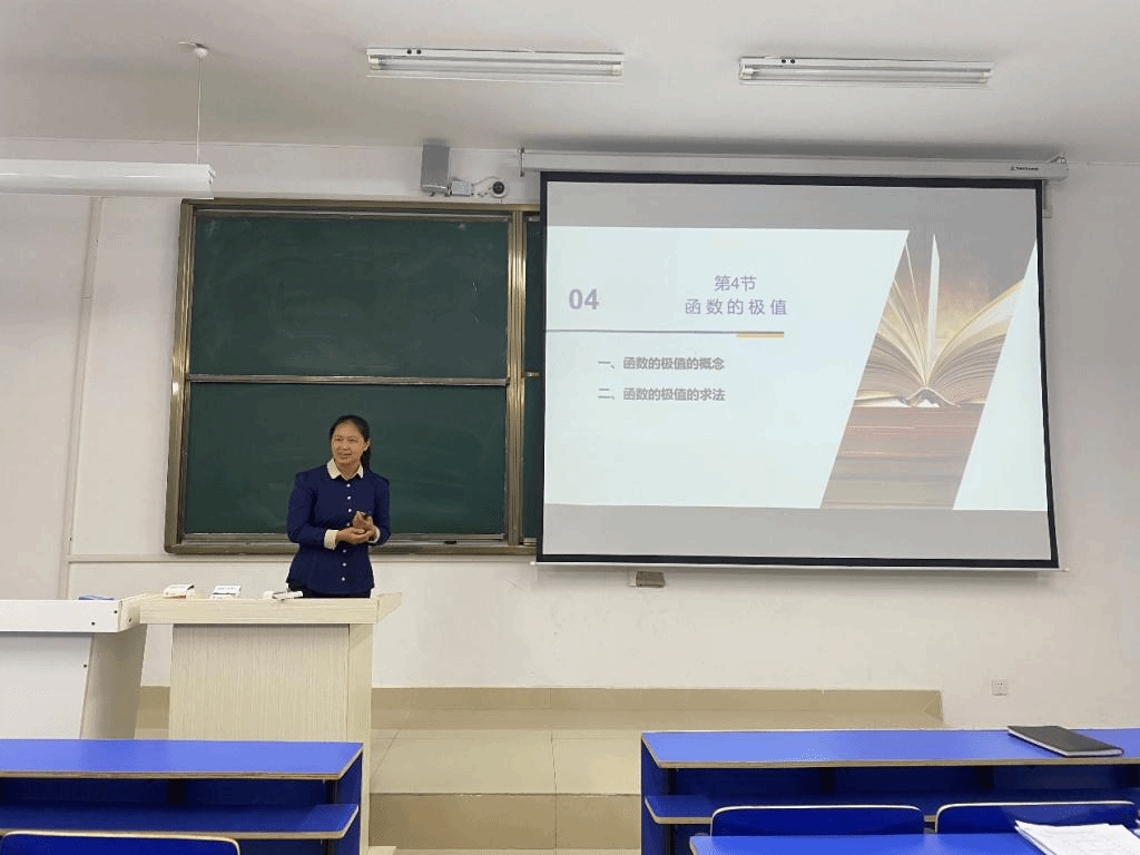 郭竹梅老师以《函数的极值》为例,以宋代诗人苏轼的七言绝句《题西林壁》为引,引入函数极值的专业知识讲解,繁杂的数学知识在思政元素的融入下变得轻松易懂。郭竹梅老师通过数学知识与人文精神、家国情怀的有机结合,将价值塑造、知识传授和能力培养融为一体,课程内容生动形象、引人入胜,赢得阵阵掌声。