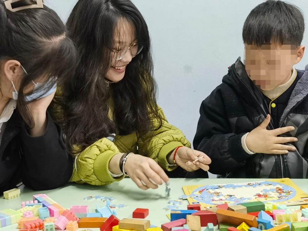 活动前期,志愿者们主动联系康复中心负责人和老师,认真学习与患有自闭症儿童的相处方式以及相关注意事项。活动中,志愿者们分成多个小组进入康复教室,与孩子们一对一结对,完成感统训练、律动训练和艺术训练,并为孩子们送上了各式各样的智力拼图和积木等益智玩具。在互动中,孩子们与志愿者从陌生到熟悉,从不知所措到亲密合作,慢慢地拉近了距离,让孩子们感受到周围人对他们的关爱,处处洋溢着爱与温情。志愿者纷纷表示:“在今后,将以自身实际行动践行志愿者精神,引导更多地人参与爱心服务活动之中。”