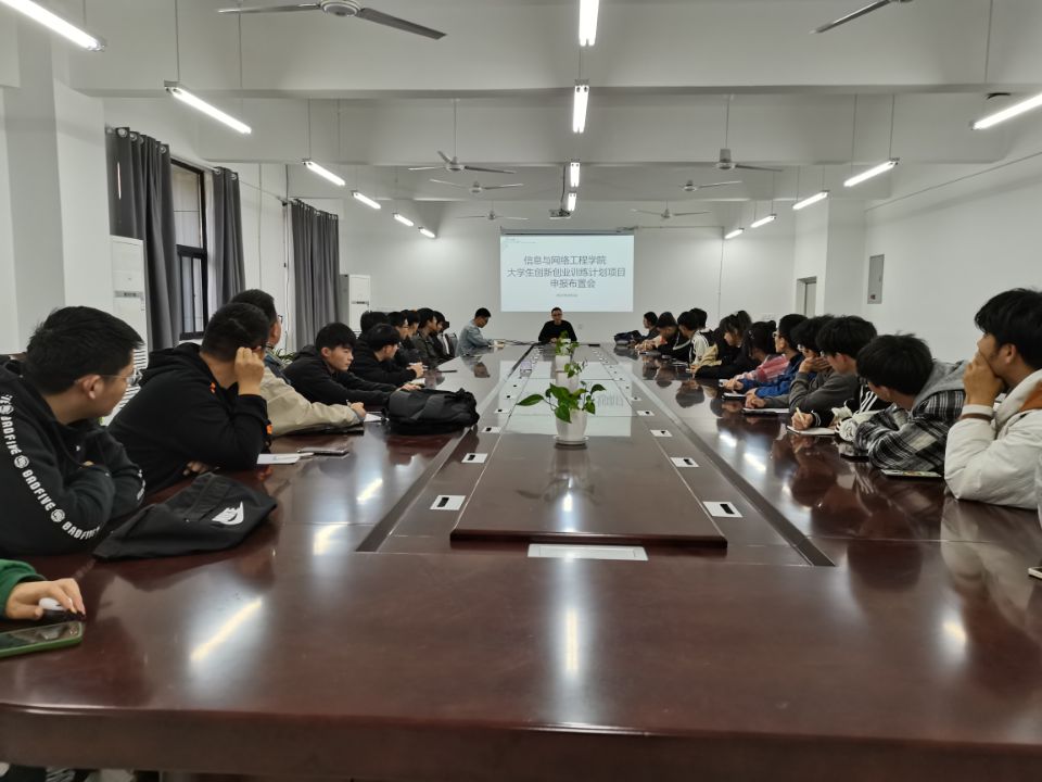 为了进一步推动大学生创新创业训练计划项目申报工作,4月6日下午,信息与网络工程学院在尚行楼B418召开大学生创新创业训练计划项目申报布置会。学院副院长曹浩、辅导员李军成、许磊、学生会科创部成员和各班级科创委员参加了会议,会议由曹浩主持。