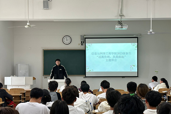 为了营造良好的校园环境,进一步增强同学们对传销的防范和抵制意识,切实保护学生的财产安全。11月21日,信息与网络工程学院在致知楼C403教室,举办“远离传销,从我做起”安全教育主题活动。2023级各班级学生代表参加教育活动,活动由专职辅导员许磊主持。